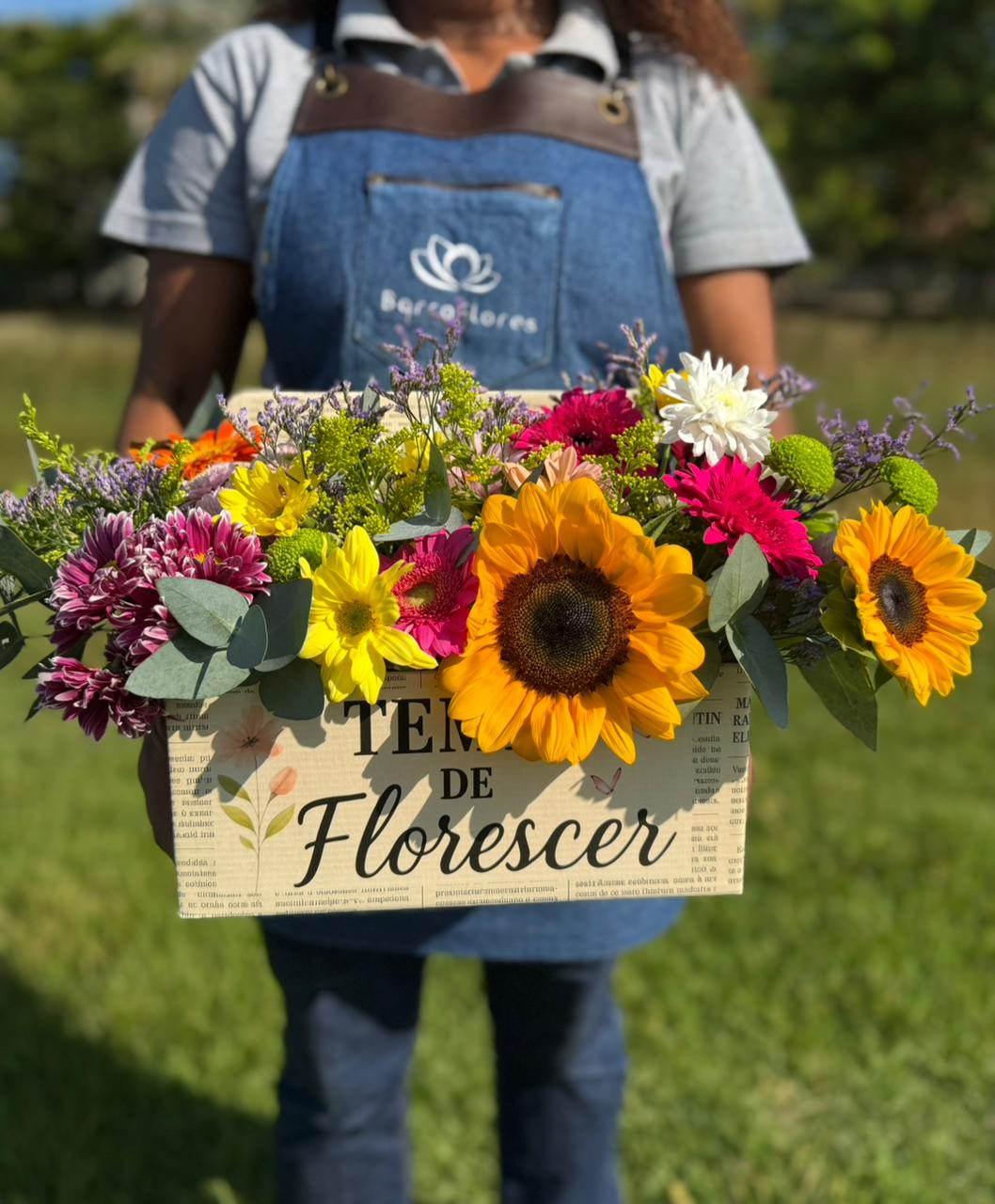 Colorida, vibrante e cheia de vida, a Box Flor do Campo G é um verdadeiro convite à alegria. Com uma composição rica em flores frescas e variadas, como girassóis, gérberas, crisântemos e complementos delicados, esse arranjo transmite leveza e espontaneidade — como um campo florido em plena primavera.