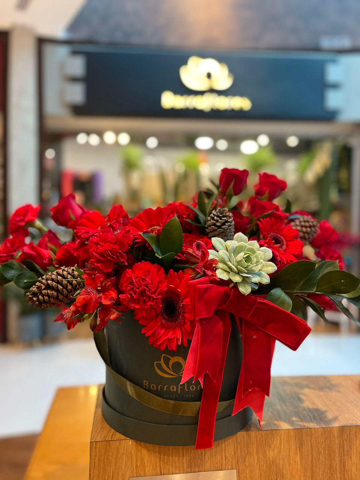 A Box Flower Deluxe G – Vermelha & Verde é um arranjo elegante, impactante e criado para quem busca sofisticação em forma de flores. Montada em uma box vermelha de acabamento premium, esta composição reúne flores frescas, selecionadas e de alto padrão, formando um mix harmonioso e cheio de personalidade em tons clássicos de vermelho e verde.