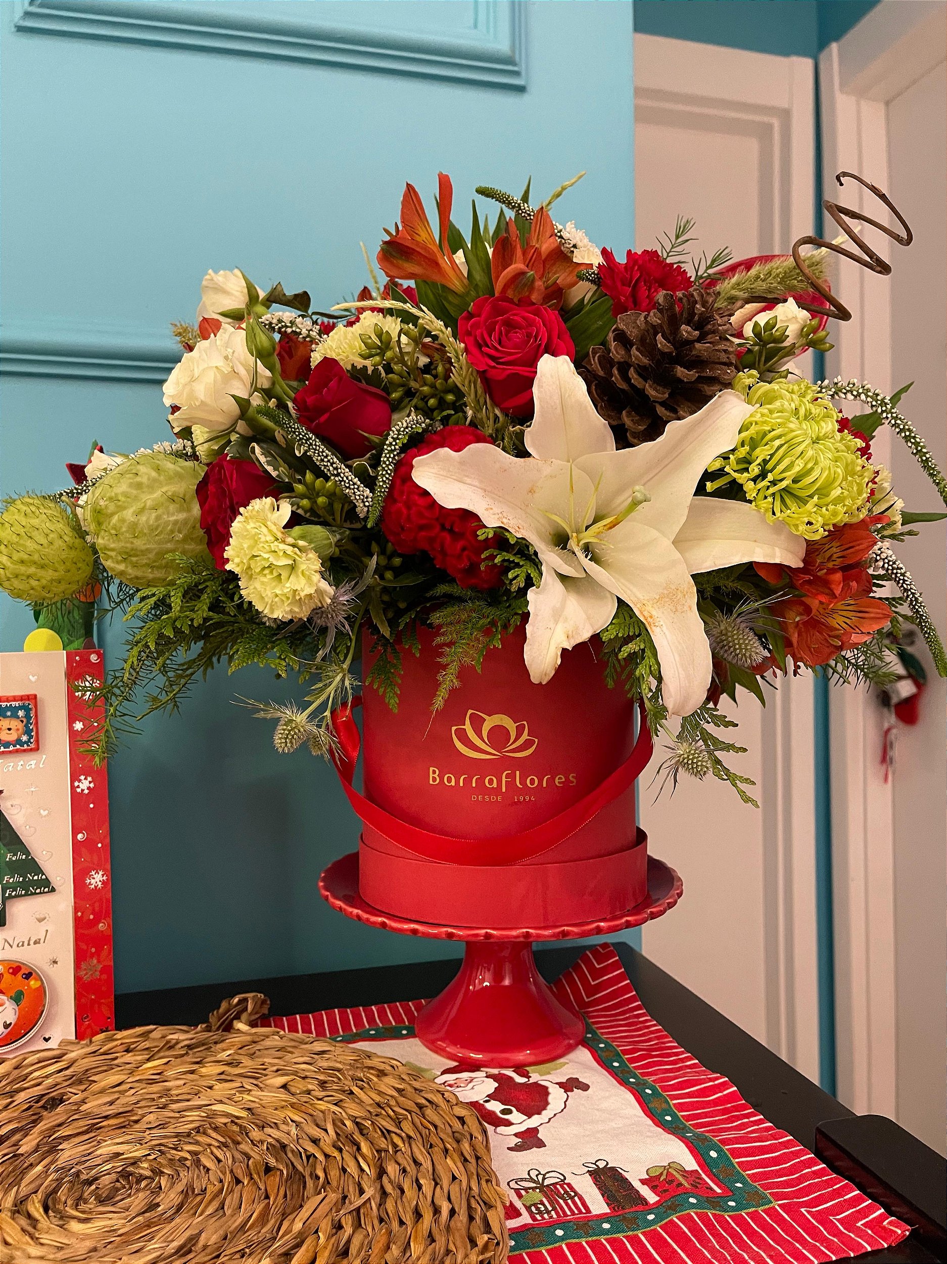 A Box Flower Deluxe P – Vermelho, Branco & Verde é uma peça delicada, elegante e perfeita para presentear ou decorar com sofisticação. Montada em uma box vermelha de acabamento premium, ela apresenta um mix de flores frescas, selecionadas e nobres, criando uma composição harmoniosa e cheia de estilo nos tons clássicos do Natal: vermelho, branco e verde.