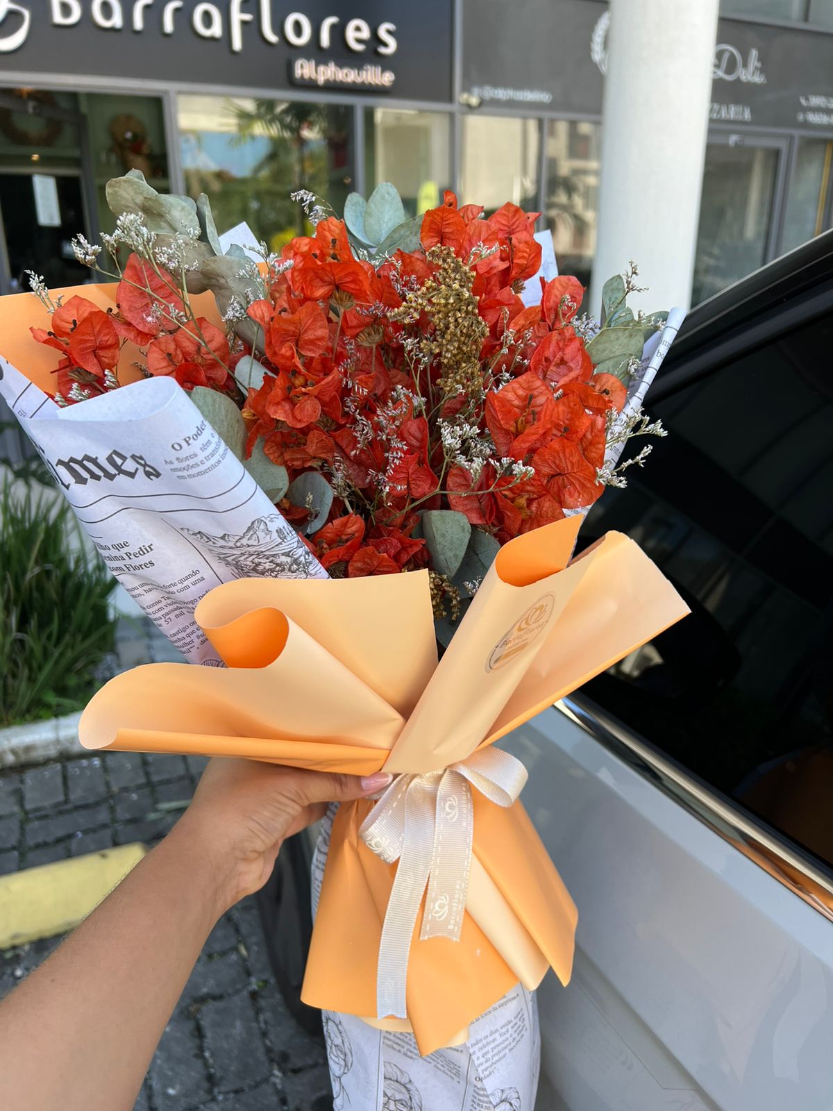 O Sunset Bougainvillea é uma celebração da luz dourada do entardecer, traduzida em um buquê sofisticado e cheio de personalidade. Com a intensidade vibrante da bougainvillea em tons de laranja queimado — que remetem ao pôr do sol — este arranjo transmite calor, elegância e uma estética naturalmente contemporânea.